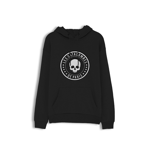 Black sweat-shirt with the logo of the Catacombs of Paris.