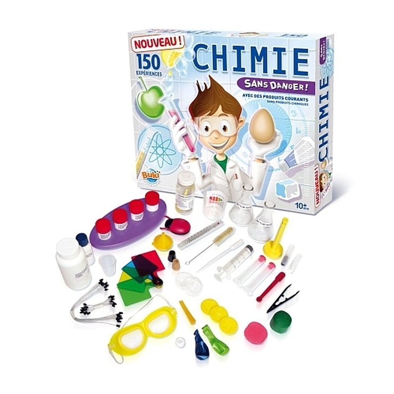 Buki's Safe Chemistry, a game that raises awareness about science, curiosity and helps understand how things work! 150 experiments to realize without chemicals: water cannon, sympathetic ink, gelatin bubbles, how to make cheese ...