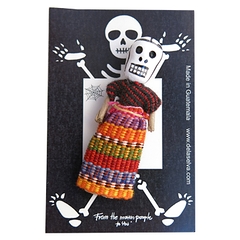 Small doll of 8 cm glued on a magnet dressed in a very colorful traditional dress, carrying a basket to ward off all your worries. You just have to place it under your pillow during the night!