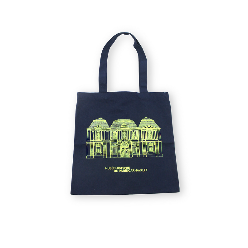 Discover the Carnavalet Blue and Yellow Façade Tote Bag, inspired by the museum's iconic façade. Made from durable cotton, lightweight and practical, it adds style to your everyday outings. Made in Albania, 37x37 cm format, 330 g: a chic and sustainable essential.