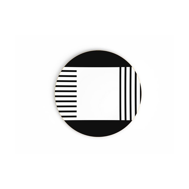 The Teatro dinner plate in porcelain stands out with its striking black and white graphic design, enhanced with gold accents. With a diameter of 27 cm, it is perfect for main courses. Made in France, it is dishwasher-safe (recommended), but not suitable for use in the microwave or oven.