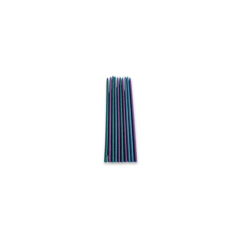 The Songe 1976 set of 10 slim candles adds a colorful and elegant touch to your table. It includes 30 cm tall, 0.8 cm diameter wax candles with a conical shape in yellow and purple, perfect for creating a warm and festive atmosphere.