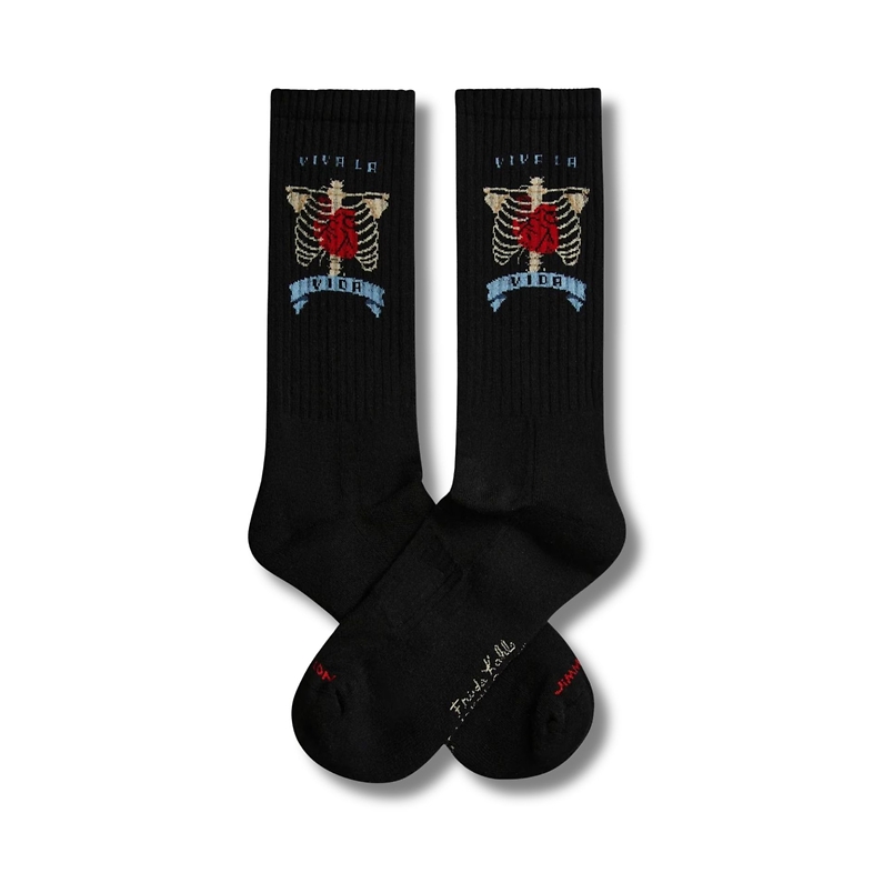 Collection Frida Kahlo x Jimmy Lion Chaussettes arrivant à mi-mollet inspirées de la figure emblématique de Frida Khalo et de la culture mexicaine Écriture "Viva la vida" avec un coeur au dessus de la cheville Style sportif Taille 41-46