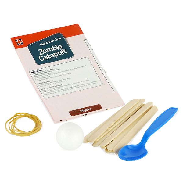 Fabriquez votre propre catapulte à zombies avec cet incroyable kit scientifique. Découvrez la science des catapultes et les lois du mouvement de Newton en créant un mouvement de levier selon différentes trajectoires. Parfaite introduction à l'ingénierie et à la physique, ce jeu inspiré des STIM est une merveilleuse activité permettant de réunir parents et enfants.