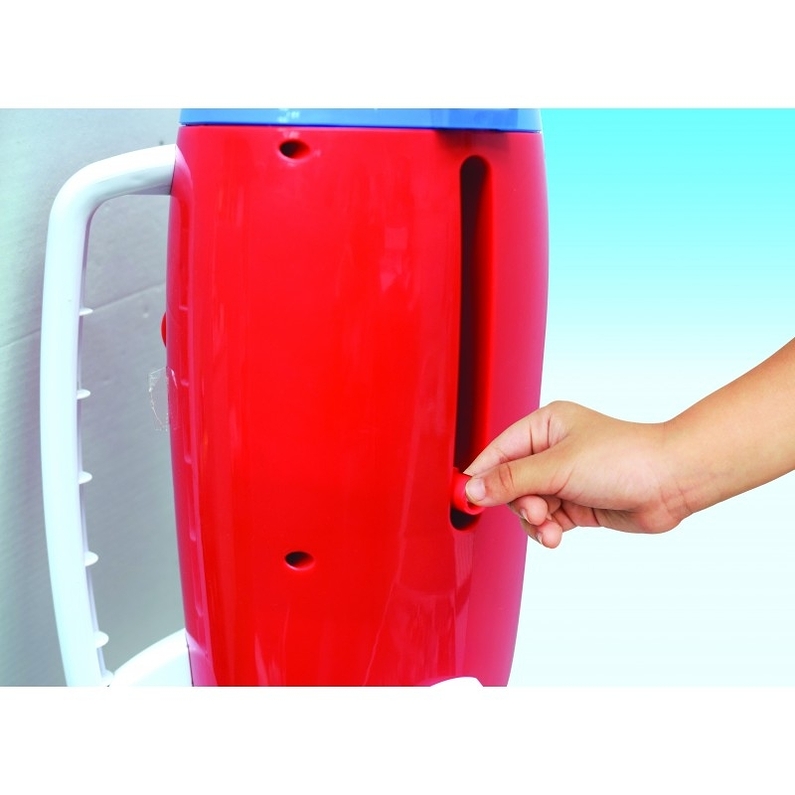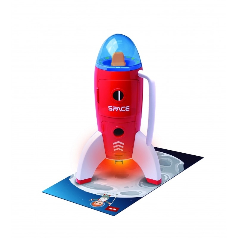 Attrape la poignée et fais voler la fusée dans l'espace! Appuie sur le bouton pour déclencher le compte à rebours et allumer la fusée pour un décollage imminent. La fusée comporte 2 étages donc les portes s'ouvrent. Au premier étage, possibilité de garer le mini rover incluse. Au second étage, installe l'astronaute sur le siège et utilise le levier pour faire monter le siège dans le cockpit. Le siège tourne à 360 degrés.