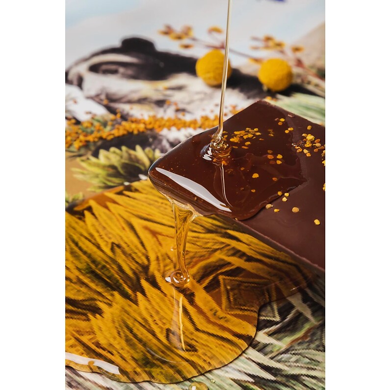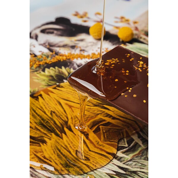 Le pollen est l'ingrédient principal de cette tablette de chocolat, conférant à ce chocolat des notes de miel et de fleurs.