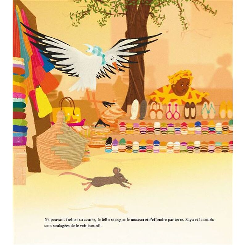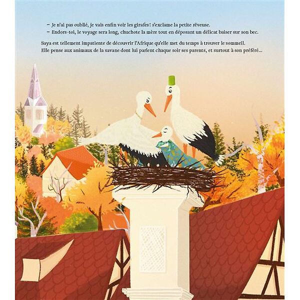 Un album jeunesse qui déconstruit les images et préjugés que l'on peut avoir sur l'Afrique à travers la figure toute douce de Saya, la petite cygogne.